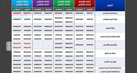 وفيما يأتي تفاصيل التقويم الدراسي في السعودية للأعوام الأربعة القادمة: