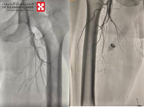 تَمكن فريق طبي بمستشفى الدكتور سليمان الحبيب بالتخصصي، من إجراء قسطرة وعائية ناجحة، أنقذت "ستينيًّا" من بتر الطرفين السفليين، بعد إصابته بانسدادات منتشرة على طول القدمين، أدت إلى انعدام تام للتروية الدموية، إضافة إلى أنه كان يعاني من حزمة أمراض مزمنة، تَعَذر معها التخدير والجراحة.