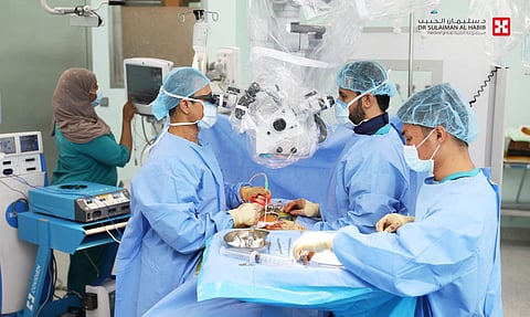 شهد مستشفى الدكتور سليمان الحبيب بالريان، عملية جراحية ناجحة لاستئصال ورم سرطاني، بدماغ طفل يبلغ من العمر سنتين ونصف، وصل المستشفى بصحبة والده بعد معاناة استمرت 7 أيام مع الألم الشديد لكامل الرأس مع استفراغ متكرر.