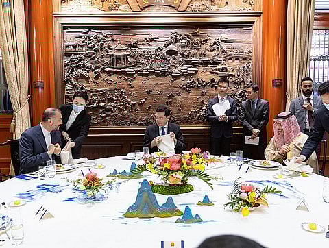 أقام وزير خارجية جمهورية الصين الشعبية السيد تشين جانج، مأدبة غداء عمل على شرف الأمير فيصل بن فرحان بن عبدالله وزير الخارجية، ووزير خارجية الجمهورية الإسلامية الإيرانية السيد حسين أمير عبداللهيان؛ وذلك بمناسبة الزيارة الرسمية التي يقوم بها الوزيران إلى العاصمة بكين لعقد جلسة مباحثات رسمية بين المملكة وإيران.