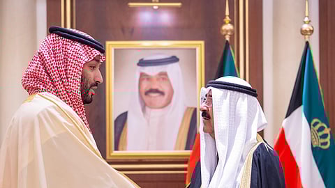 بناءً على توجيه خادم الحرمين الشريفين الملك سلمان بن عبدالعزيز آل سعود - حفظه الله - ، قدّم صاحب السمو الملكي الأمير محمد بن سلمان بن عبدالعزيز آل سعود ولي العهد رئيس مجلس الوزراء، بعد وصوله اليوم، لدولة الكويت، واجب العزاء والمواساة في وفاة صاحب السمو الشيخ نواف الأحمد الجابر الصباح – أمير دولة الكويت – رحمه الله -.