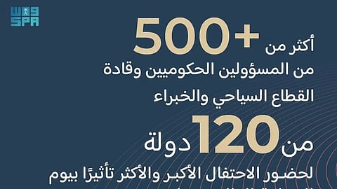أعلنت اللجنة المنظمة للفعاليات المصاحبة ليوم السياحة العالمي، الذي تستضيفه المملكة للمرة الأولى في عاصمتها الرياض، يومي 27 - 28 سبتمبر الجاري، مشاركة أكثر من 500 من القادة والخبراء والمسؤولين في قائمة المتحدثين في الجلسات الحوارية للفعالية، من 120 دولة حول العالم.