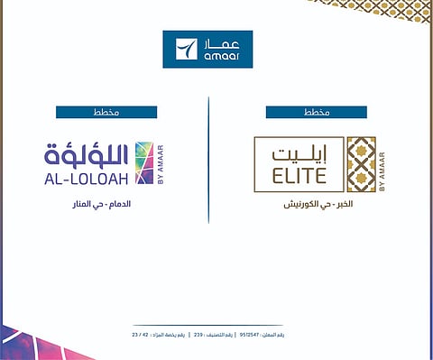 تطرح شركة عمار العقارية، فرصتين عقاريتين فريدتين من نوعهما، في مزاد علني غدًا الاثنين الموافق 30 يناير، والمتمثلة في مخطط إيليت السكني التجاري والاستثماري، الواقع في قلب مدينة الخبر على امتداد طريق الملك فيصل الرئيسي، ومخطط اللؤلؤة السكني والتجاري الواقع في حي المنار بمدينة الدمام.