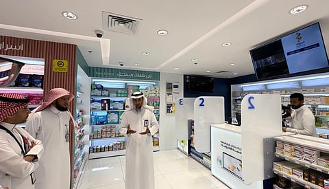 وتعمل الصيدلية على مدار 24 ساعة بكوادر صيدلية سعودية تخدم كافة المستفيدين والمستفيدات والموظفين والموظفات بالمجمع، من خلال تمكين المستفيد من جهاز تحضير الوصفات بعد الخروج من العيادة، حيث يقوم المريض بالتوجه للجهاز لإدخال رقم الوصفة، بالإضافة لرقم السجل المدني، ومن ثم التوجه لصيدلية الدواء المتواجدة ببرج النساء والولادة لاستلام الوصفة وتم توفير أكثر من ١٠ أجهزة تحضير وصفات موزعة على مواقع مختلفة بالمجمع.