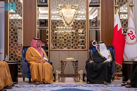 ونقل الأمير عبدالعزيز بن سعود في بداية الاستقبال، تحيات صاحب السمو الملكي الأمير محمد بن سلمان بن عبدالعزيز آل سعود ولي العهد رئيس مجلس الوزراء -حفظه الله -، لسمو ولي العهد وتمنياته لمملكة البحرين قيادةً وشعبًا دوام التقدم والازدهار.