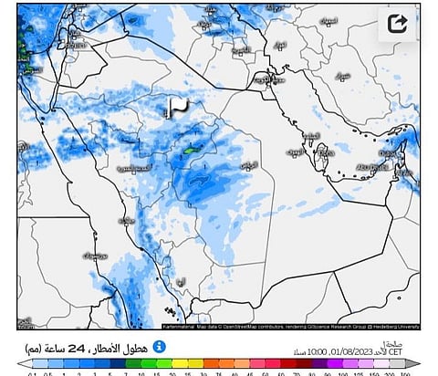 وأوضح عبر حسابه في تويتر، أن "مدرار" مستمرة على أجزاءٍ متفرقة من: مكة المكرّمة والشمالية والجوف وتبوك وحائل والقصيم والمدينة المنوّرة والباحة وعسير وغرب منطقة الرياض، بأمطارٍ من خفيفة لمتوسطة، وأجواء باردة ليلاً ولطيفة نهاراً على معظم مناطق المملكة.