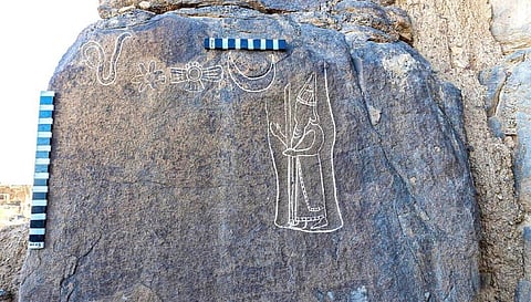 وكانت هيئة التراث قد أعلنت في 14 يوليو 2021، اكتشاف نقوش صخرية تعود للملك البابلي نابونيد في منتصف القرن السادس قبل الميلاد، وتتكون من نقش على صخرة بازلتية تجسد، نابونيد ممسكاً بالصولجان أمام رموز دينية، مع وجود نص مسماري في نحو 26 سطراً، وهو ما تم اعتباره أطول نص كتابي يُعثر عليه بالمملكة.