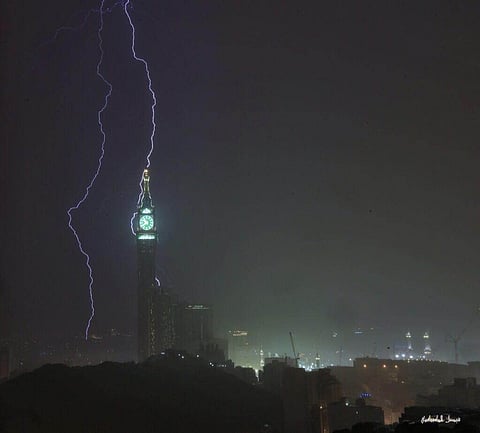 إبراهيم الحذيفي- سبق- مكة المكرّمة: ضربت الصواعق القوية التي شهدتها مكة المكرّمة, مساء أمس، برج الساعة مرات عدة وتسبّبت في إيقاف التيار الكهربائي عنه فترةً من الوقت قبل إعادته في وقتٍ لاحق.