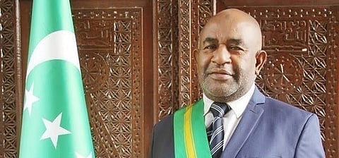 وكان في وداعه بمطار الملك خالد الدولي سفير جمهورية القُمُر المتحدة لدى المملكة الحبيب عباس، ومندوب عن المراسم الملكية.