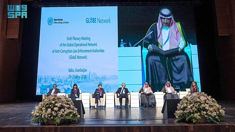 رأست المملكة -ممثلة بهيئة الرقابة ومكافحة الفساد- الاجتماع العام السادس لشبكة العمليات العالمية لسلطات إنفاذ القانون المعنية بمكافحة الفساد (GlobE Network) المنعقد في جمهورية أذربيجان خلال الفترة 22- 24 ذي القعدة 1446هـ، بوفدٍ يرأسه رئيس هيئة الرقابة ومكافحة الفساد مازن بن إبراهيم الكهموس.