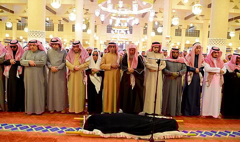 وأم الصلاة مفتي عام المملكة رئيس هيئة كبار العلماء وإدارة البحوث العلمية والإفتاء الشيخ عبدالعزيز بن عبدالله آل الشيخ.