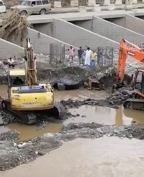 ووفقًا للمعلومات، فإن الشيول كان متوقفًا بالوادي قبل وصول السيل، وجرفه التيار إلى فتحات العبارات، ثم طمره في الطين كليًا، وباشرت المعدات هذا اليوم الحفر من أجل استخراجه.