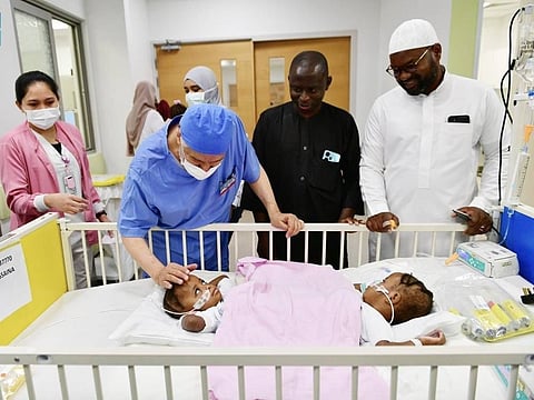 وكان المستشار في الديوان الملكي المشرف العام على مركز الملك سلمان للإغاثة والأعمال الإنسانية رئيس الفريق الطبي والجراحي السعودي لعمليات فصل التوائم السيامية الدكتور عبدالله بن عبدالعزيز الربيعة قد ذكر في تصريح صحفي، أن التوأم السيامي النيجيري (حسنة وحسينة) قَدِمَتا إلى المملكة في 16 ربيع الآخر 1445هـ الموافق 31 أكتوبر 2023م، وقام الفريق الطبي بعد دخول التوأم إلى مستشفى الملك عبدالله التخصصي للأطفال، بإجراء فحوصات دقيقة ومتعددة لهما وعقد عدة اجتماعات، توصل من خلالها إلى أن التوأم يشتركان في عدة مناطق في أسفل البطن والحوض وأسفل العمود الفقري والأعصاب السفلية للعمود الفقري، وقرر إجراء عملية أولية لهما بفصل قناة العمود الفقري؛ حيث قام الفريق الطبي المختص بجراحة الأعصاب بإجراء هذه العملية منذ عدة أسابيع، بعد ذلك عقد الفريق الطبي والجراحي عدة اجتماعات وقرر الفريق إجراء عملية الفصل اليوم الخميس.