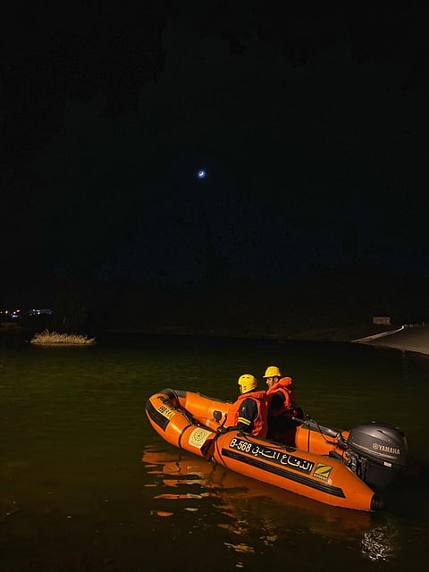 وقال: على الفور جرى تحريك فِرق الإنقاذ المائي والمعدات المساندة لموقع الحادث. وبالوصول قامت الفِرق بتطبيق خطة للبحث بواسطة القوارب عن طريق الغواصين، وتم العثور على جثتَين لشخصَين، وانتشالهما. نسأل الله تعالى أن يتغمدهما بواسع رحمته. مبينًا أن فريق التحقيق باشر أعماله بالموقع، وتم تسليم الحالة للجهة المختصة.