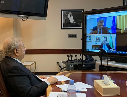 وقال: إن استجابة تحالف دعم الشرعية في اليمن لدعوة الأمين العام الأخيرة لوقف إطلاق النار في اليمن وتأييد المملكة العربية السعودية لدعوته لوقف إطلاق النار العالمي في ظل جائحة فيروس كورونا ودعم جهود مبعوثه الخاص في اليمن من أجل الدفع بالعملية السياسية؛ يؤكد مدى الإيمان الراسخ بأهمية الوصول إلى حل سياسي شامل للنزاع في اليمن وفقًا للمرجعيات الثلاث وهي: المبادرة الخليجية، ومخرجات مؤتمر الحوار الوطني الشامل، وقرارات مجلس الأمن ذات الصلة وخاصة القرار رقم 2216، هذا النزاع الذي تسببت به المليشيا الحوثية المدعومة من إيران غير آبهة بما نتج عنه انقلابهم على الشرعية والشعب اليمني من استنزاف لموارد اليمن وإغراق شعبه في الفوضى والجوع والمرض، واستغلال أطفاله في هذا النزاع من أجل مكاسبها السلطوية.