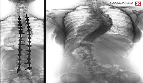 أنهى مستشفى الدكتور سليمان الحبيب بالفيحاء في جدة، معاناة شابة عمرها "17" سنة، مصابة بانحرافٍ مضاعفٍ في العمود الفقري، ونجح الفريق الطبي الذي قاده د. صلاح الدين خليفة؛ استشاري جراحة العظام والعمود الفقري، في تقويم العمود الفقري وتثبيت ودمج الفقرات، مع تجميل للقفص الصدري.