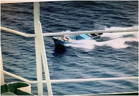رصدت صور حصلت عليها "سبق"، لحظة إحباط العمل الإرهابي الذي كان يستهدف إحدى ناقلات النفط في بحر العرب جنوب ميناء نشطون اليمني عبر زوارق.