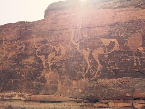 رسوم على واجهة الجبال ورسوم لأشكال آدمية وحيوانية ونحت فريد