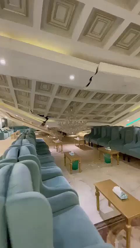 ونشرت مقاطع فيديو أظهرت حجم الكارثة؛ حيث سقط السقف بكامله؛ فيما وقع جزء كبير منه على كراسي القاعة.