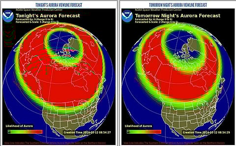 وأضاف في تغريدة على حسابه في "إكس"، أنه بحسب التوقعات الحالية، من المتوقع وصول العاصفة المغناطيسية إلى مستوى G5 مرة أخرى، اليوم الأحد 12 مايو، ما بين الساعة 09 و12 بتوقيت غرينتش.. ومن المتوقع أن تبقى في مستويات G4 وG5 حتى الساعة السادسة مساءً بتوقيت غرينتش.