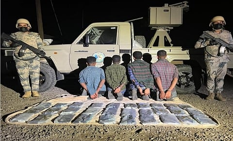 وقال حرس الحدود، إن "الدوريات البرية في قطاع الدائر بمنطقة جازان، قبضت على 4 مخالفين لنظام أمن الحدود من الجنسية الإثيوبية، بحوزتهم 30 كيلوجراماً من مادة الحشيش المخدر".