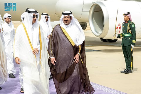 وكان في مقدمة مستقبليه في مطار الملك خالد الدولي، الأمير محمد بن عبدالرحمن بن عبدالعزيز نائب أمير منطقة الرياض، وسفير دولة قطر لدى المملكة بندر بن محمد العطية، ومندوب عن المراسم الملكية.