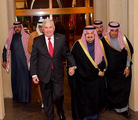 وكان في استقباله لدى وصوله مقر الحفل سفير الولايات المتحدة الأمريكية لدى المملكة جون أبي زيد، وعدد من المسؤولين بالسفارة .