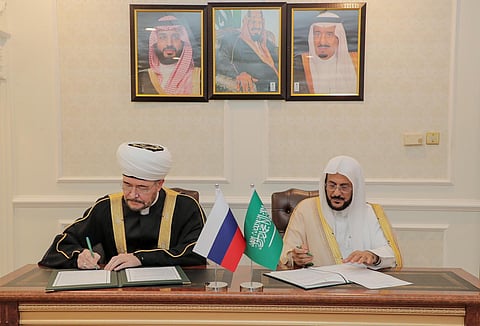 وقّع وزير الشؤون الإسلامية والدعوة والإرشاد الشيخ الدكتور عبداللطيف بن عبدالعزيز آل الشيخ، بمكتبه بجدة اليوم، مع رئيس الإدارة الدينية لمسلمي جمهورية روسيا الاتحادية، الشيخ راوي عين الدين، البرنامج التنفيذي لمذكرة التفاهم الموقعة بين البلدين سابقًا في المجالات الإسلامية.