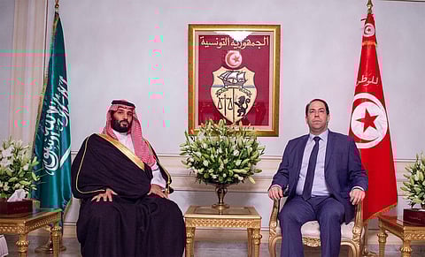 التقى صاحب السمو الملكي الأمير محمد بن سلمان بن عبدالعزيز ولي العهد نائب رئيس مجلس الوزراء وزير الدفاع - حفظه الله - في العاصمة تونس، أمس الثلاثاء، دولة رئيس الحكومة التونسية يوسف الشاهد.
