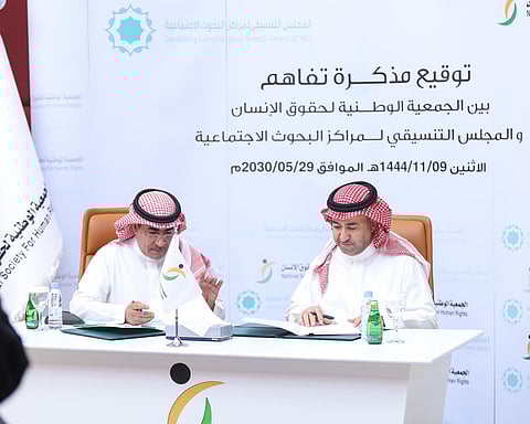 وقّع رئيس الجمعية الوطنية لحقوق الإنسان خالد بن عبدالرحمن الفاخري، ورئيس المجلس التنسيقي لمراكز البحوث الاجتماعية الدكتور سامي بن عبدالعزيز الدامغ، اليوم الاثنين، في مدينة الرياض، مذكرة تعاون مشتركة.