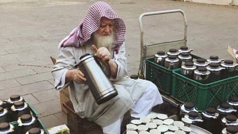 وانتقل "إسماعيل الزعيم" -يرحمه الله-، الذي ينحدر من مدينة حماه بسوريا، للإقامة في المدينة المنوّرة منذ أكثر من 50 عاماً، وعُرف عنه خلال إقامته في المدينة المنوّرة، بعمله الخيري وتوزيعه الشاي والقهوة على الزوّار بشكلٍ مجاني كل يومٍ دون مللٍ أو كللٍ، حيث كان موقعه بالقرب من مسجد قباء.