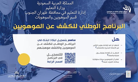 دعت إدارة التعليم بمحافظة ظهران الجنوب، الطلاب والطالبات للتسجيل في البرنامج الوطني للكشف عن الموهوبين، الذي تنفّذه مؤسسة الملك عبدالعزيز ورجاله للموهبة والإبداع "موهبة"، بالشراكة الفاعلة مع وزارة التعليم، وبالتعاون مع المركز الوطني للقياس.