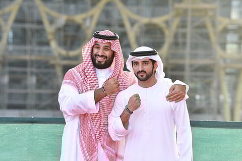 أعرب ولي عهد دبي الشيخ حمدان بن محمد بن راشد آل مكتوم عن تشرفه بمرافقة ولي العهد الأمير محمد بن سلمان إلى معرض إكسبو 2020 دبي، اليوم (الخميس).