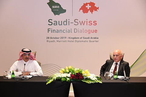 افتتح وزير المالية الأستاذ محمد بن عبدالله الجدعان بحضور رئيس الاتحاد السويسري أولي ماورر، أعمال الحوار المالي السعودي السويسري في الرياض، أمس الاثنين 29 صفر 1414هـ الموافق 28 أكتوبر 2019م.