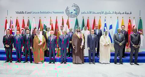 وعُقدت القمة الثانية لمبادرة الشرق الأوسط الأخضر، أمس، بالتزامن مع انعقاد المؤتمر الـ27 للأمم المتحدة بشأن المناخ "كوب 27" في شرم الشيخ بمصر، وتمخضت القمة عن إعلان ولي العهد الأمير محمد بن سلمان عن استضافة المملكة مقر الأمانة العامة لمبادرة الشرق الأوسط الأخضر، والإسهام بمبلغ 2.5 مليار دولار؛ دعماً لمشروعات المبادرة وميزانية الأمانة العامة على مدى عشر سنوات، واستهداف صندوق الاستثمارات العامة للوصول للحياد الصفري لانبعاثات غازات الاحتباس الحراري بحلول عام 2050.
