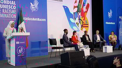 جاء ذلك خلال رئاستها وفد المملكة المشارك في أعمال المنتدى الوزاري العالمي لمكافحة العنصرية والتمييز الذي نظمته اليونيسكو على مدى يومين متتاليين 28 و29 نوفمبر في العاصمة المكسيكية مكسيكو سيتي.