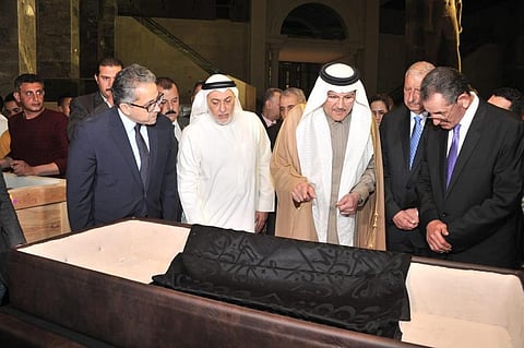 وقال: "يشرفني ويسعدني نيابة عن حكومة خادم الحرمين الشريفين اليوم بأن أهدي هذا المتحف قطعة من كسوة الكعبة المشرفة وهي عبارة عن رمز لعمق العلاقات فيما بين البلدين ورمز للروابط الدينية فيما بينهما وروابط الدم وأواصر التاريخ".