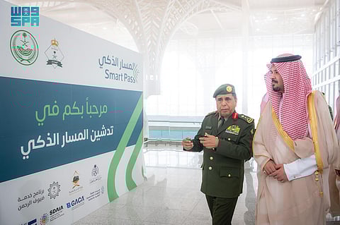تحت رعاية الأمير عبدالعزيز بن سعود بن نايف بن عبدالعزيز وزير الداخلية، دشّن الأمير سلمان بن سلطان بن عبدالعزيز أمير منطقة المدينة المنورة، مبادرة المسار الذكي بالمديرية العامة للجوازات، بالشراكة مع وزارة الحج والعمرة وهيئة الحكومة الرقمية والهيئة السعودية للبيانات والذكاء الاصطناعي، في مطار الأمير محمد بن عبدالعزيز الدولي بالمدينة المنورة، بحضور مدير عام الجوازات الفريق سليمان بن عبدالعزيز اليحيى.
