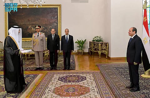 من جهته رحب فخامة الرئيس المصري، بسفير خادم الحرمين الشريفين، متمنياً له التوفيق والنجاح في مهام عمله، وحمّله تحياته لخادم الحرمين الشريفين، وسمو ولي عهده الأمين - حفظهما الله -، وللمملكة وشعبها دوام التقدم والرخاء.