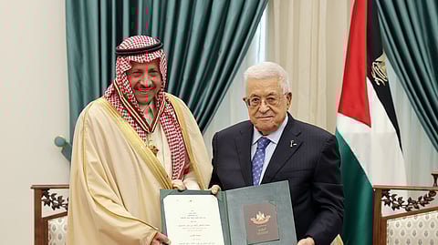 ومنح الرئيس الفلسطيني، سفير المملكة، نجمة القدس، تقديرًا لدوره المتميز في تعزيز علاقات الأخوة الفلسطينية- السعودية، وتثمينًا لجهوده في دعم الشعب الفلسطيني، ونصرة قضيته العادلة من أجل نيل حريته واستقلاله.