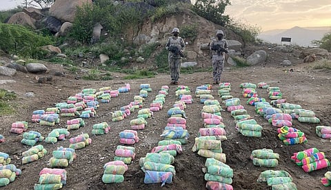 أحبطت الدوريات البرية لحرس الحدود في قطاع الدائر بمنطقة جازان، تهريب (220) كيلوجرامًا من نبات القات المخدر.