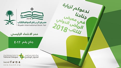 يشارك مركز الملك عبدالعزيز للحوار الوطني في معرض الرياض الدولي للكتاب، الذي انطلقت فعالياته اليوم تحت رعاية خادم الحرمين الشريفين الملك سلمان بن عبدالعزيز حفظه الله، وذلك خلال الفترة من ٢٦ جمادى الآخرة إلى ٧ رجب، الموافق ١٤ -٢٤ مارس 2018 في مركز الرياض الدولي للمؤتمرات والمعارض.