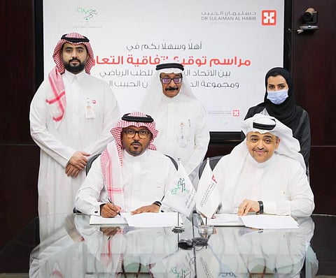 وقّعت مجموعة الدكتور سليمان الحبيب، اتفاقية تعاون مشترك مع الاتحاد السعودي للطب الرياضي في مجالات التدريب والتعليم، والاستفادة من الخبرات العلمية والعملية المتميزة والقدرات والتجهيزات المتطورة للمجموعة في مجال الطب الرياضي.. وقد مثّل مجموعةَ الدكتور سليمان الحبيب، الأستاذ الدكتور عوض العمري الرئيس التنفيذي للشؤون الطبية والأكاديمية.. فيما مثل الاتحادَ الأستاذ ماهر الفرحان المدير التنفيذي للاتحاد.