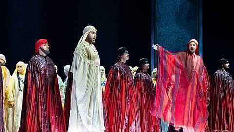 ويتواصل عرض العمل الأوبرالي حتى الرابع من مايو المقبل، وهو من تأليف الشاعر والكاتب السعودي صالح زمانان، والتأليف الموسيقي الملحن الأسترالي لي برادشو، فيما يخرج العمل السويسري الإيطالي دانييل فينزي باسكا، ويؤدي المقطوعات الموسيقية أوركسترا دريسدن سينفونيكر والجوقة الفلهارمونية التشيكية، في حين أسهمت مصممة الأزياء جيوفانا بوزي وفريقها في تصميم أزياء تعكس روح الأوبرا والجماليات البصرية لعصر ما قبل الإسلام.