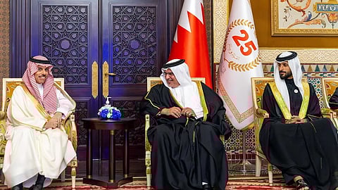 ونقل الأمير فيصل بن فرحان في بداية الاستقبال تحيات خادم الحرمين الشريفين الملك سلمان بن عبدالعزيز آل سعود، وصاحب السمو الملكي الأمير محمد بن سلمان بن عبدالعزيز آل سعود، ولي العهد رئيس مجلس الوزراء -حفظهما الله-، للقيادة البحرينية، وتمنياتهما لحكومة وشعب البحرين الشقيق المزيد من التقدم والازدهار.
