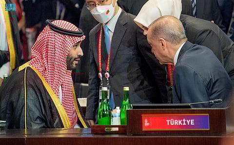 الْتقى صاحب السمو الملكي الأمير محمد بن سلمان بن عبدالعزيز، ولي العهد رئيس مجلس الوزراء رئيس وفد المملكة المشارك في قمة قادة دول مجموعة العشرين في مدينة بالي بجمهورية إندونيسيا، اليوم، الرئيس رجب طيب أردوغان رئيس جمهورية تركيا؛ وذلك على هامش انعقاد القمة.