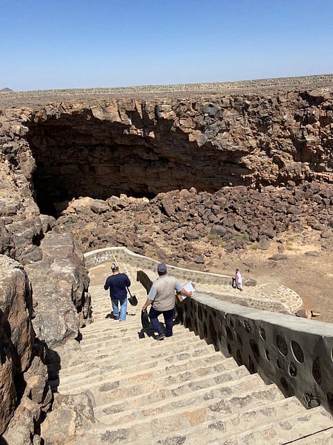 زار فريق فني متخصص من قسم البراكين من المركز الوطني للزلازل والبراكين بهيئة المساحة الجيولوجية, أمس, كهف أم جرسان شمال المدينة المنورة.