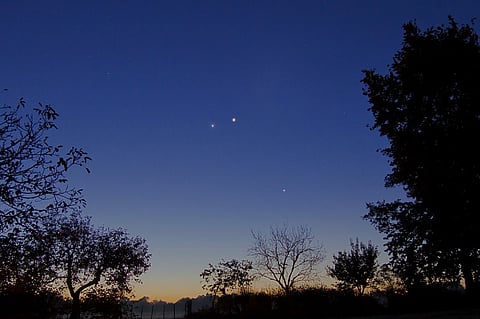 وأشار إلى أن لمعان الزهرة (3.93-) سوف يتفوق على لمعان قلب الأسد (+1.34) الذي يُصنف على أنه نجم من القدر الأول، أي أحد ألمع نجوم السماء، لذلك فإن قلب الأسد سيبدو خافتًا بجانب كوكب الزهرة المبهر وهو الآن أكثر إشراقًا بحوالي 130 مرة مع وجود المريخ في أسفل اليمين في مشهد جميل ومثير للاهتمام.
