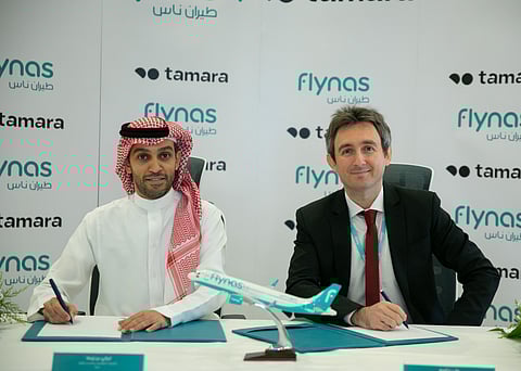 وقع الاتفاقية علي جاسم، نائب رئيس طيران ناس للمبيعات الرقمية والولاء والمنتجات، وتركي طارق بن زرعة، الشريك المؤسس والمدير العام لشركة تمارا والتي تهدف إلى توفير حلول السداد على دفعات شهرية.