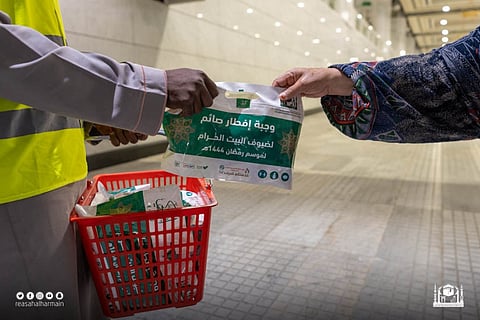 تُقدم الرئاسة العامة لشؤون المسجد الحرام والمسجد النبوي ممثلة بوكالة الخدمات الاجتماعية والتطوعية والإنسانية عدداً من الوجبات الجافة للصائمين على مائدتي الإفطار والسحور بالمسجد الحرام، وذلك ضمن حملة الرئاسة "خدمة معتمرينا شرف لمنسوبينا" وتحت شعار "من الوصول حتى الحصول".